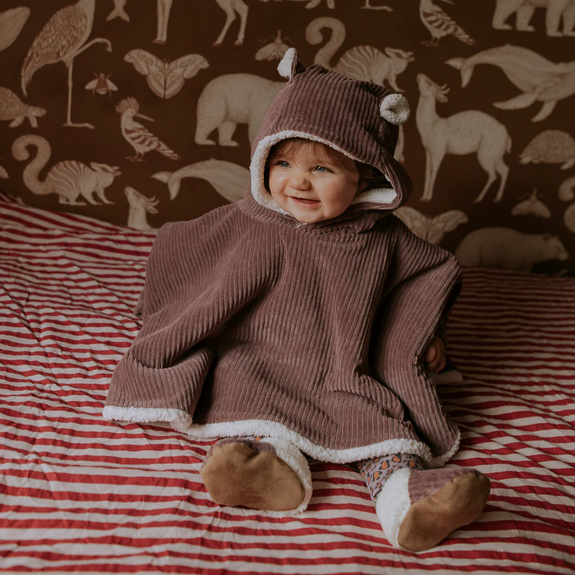 Ce poncho bébé en velours parme est un cadeau de naissance original et utile, à ajouter sans hésiter à une liste de naissance. Sa coupe ample et sa couleur douce s’adaptent à toutes les saisons, tous les styles… et toutes les aventures !