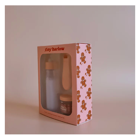 Offrez un moment de magie à vos enfants (ou à leurs poupées !) avec cette box noël exclusive signée Tiny Harlow. Composée d’un biberon de lait festif et d’un petit pot parfum pain d’épices, cette adorable box évoque tout le charme et la douceur des fêtes de fin d’année.