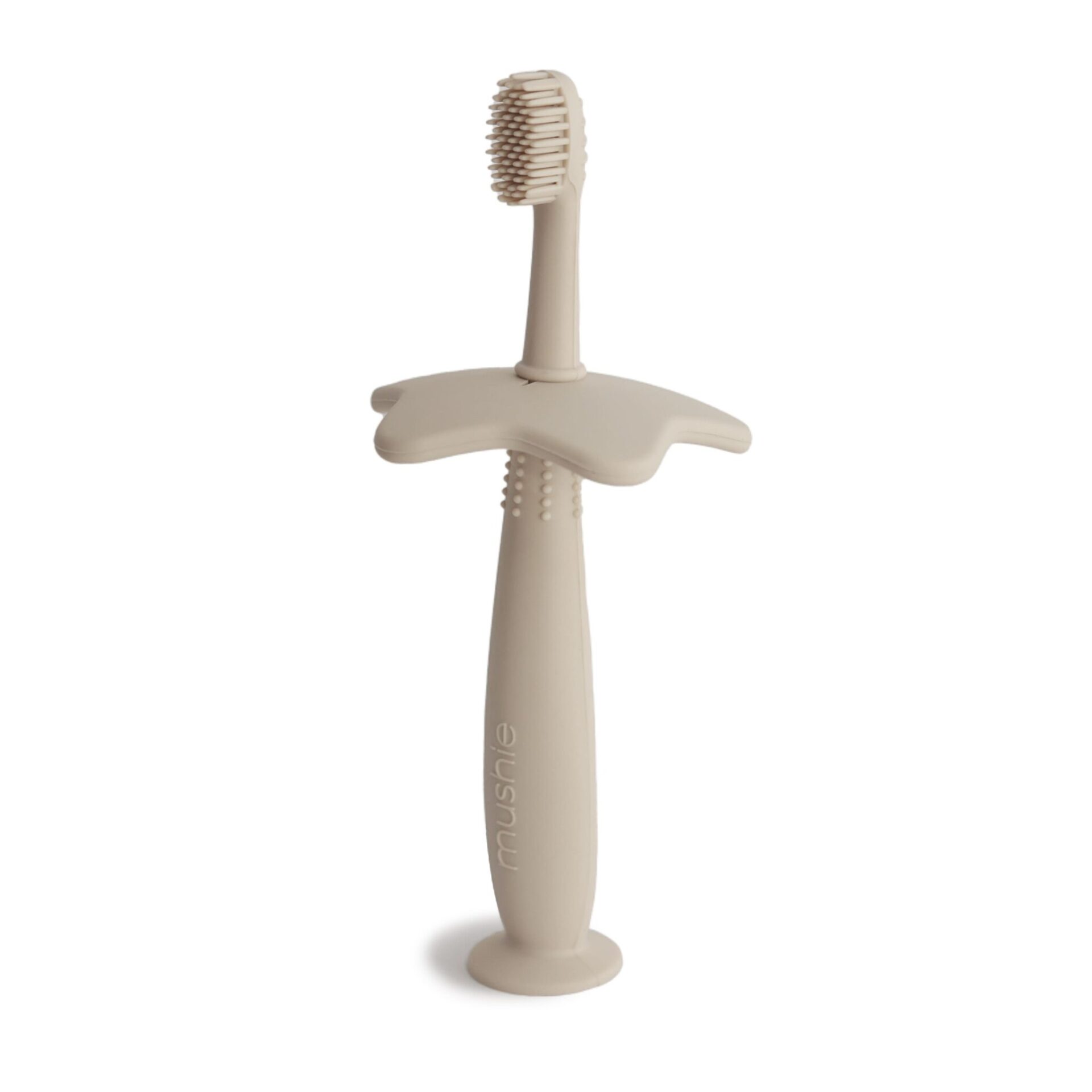Pour un brossage de dents tout en douceur, Mushie a imaginé la brosse à dents en silicone.