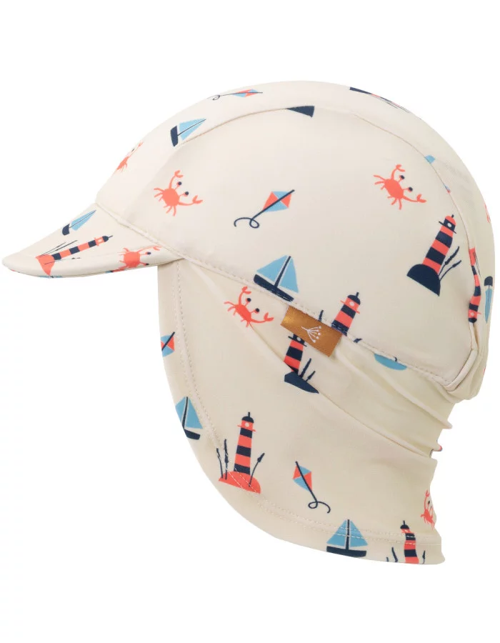 Sans cordon ni scratch, il est simple à enfiler, agréable à porter et ne gêne pas les mouvements de la tête. Son design sobre, avec de jolis petits phares sur fond crème, en fait une pièce mixte qui plaira autant aux parents qu’aux enfants.