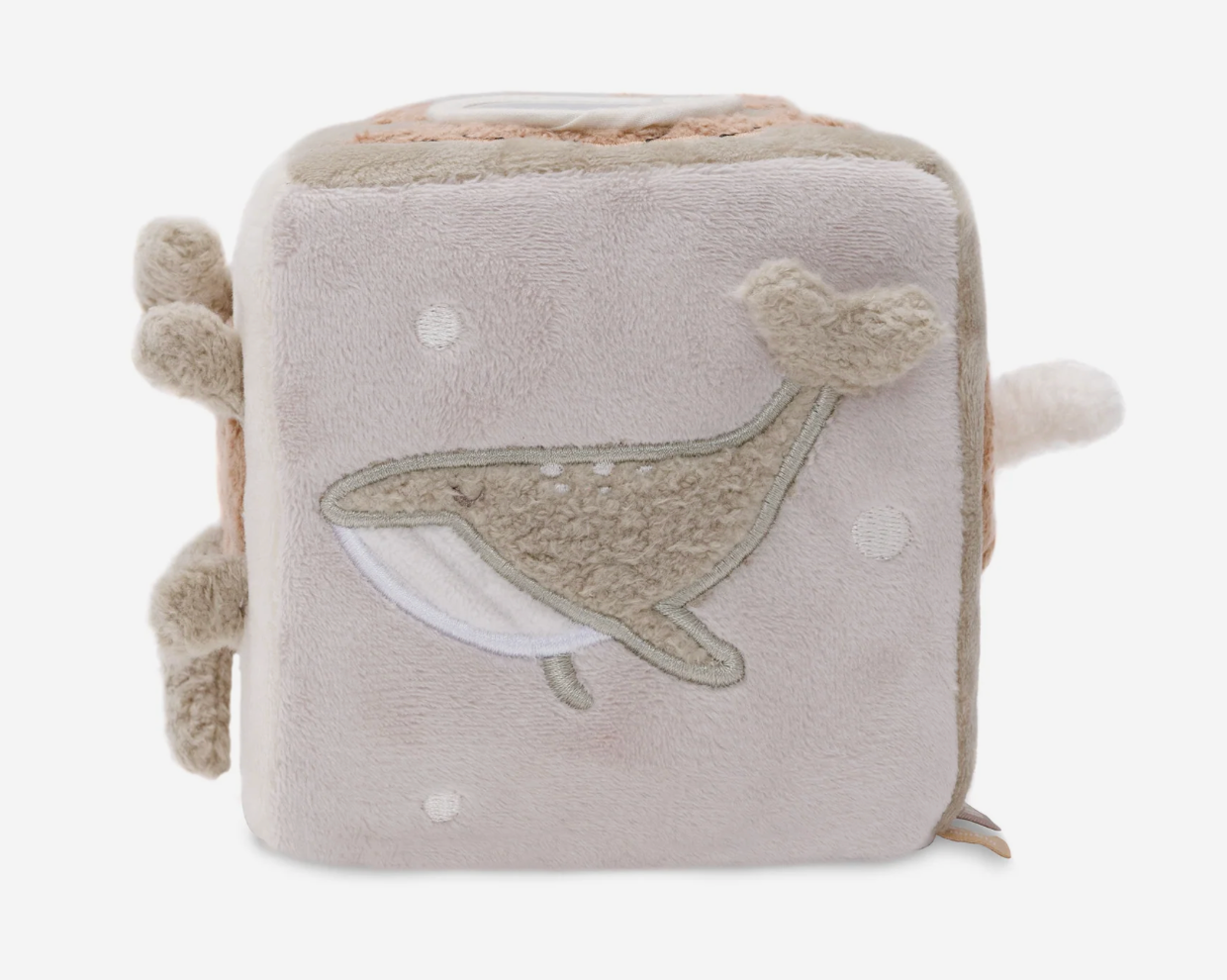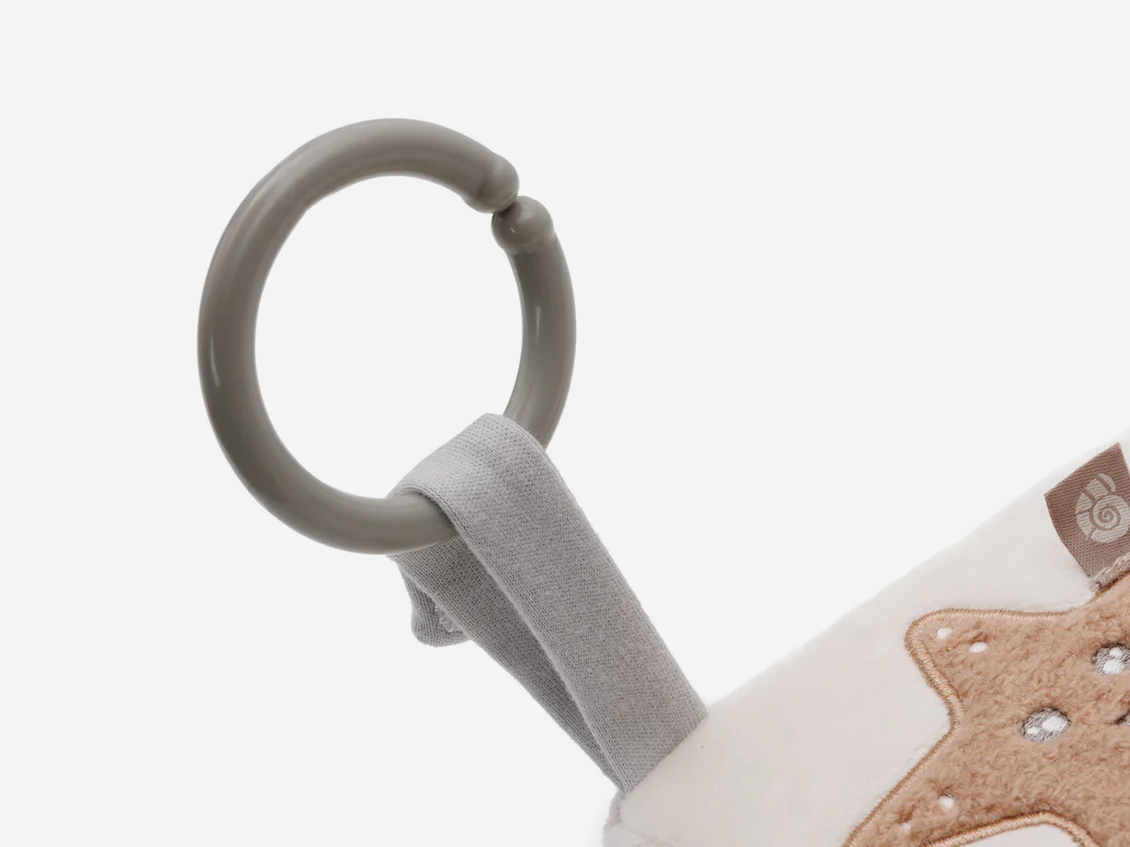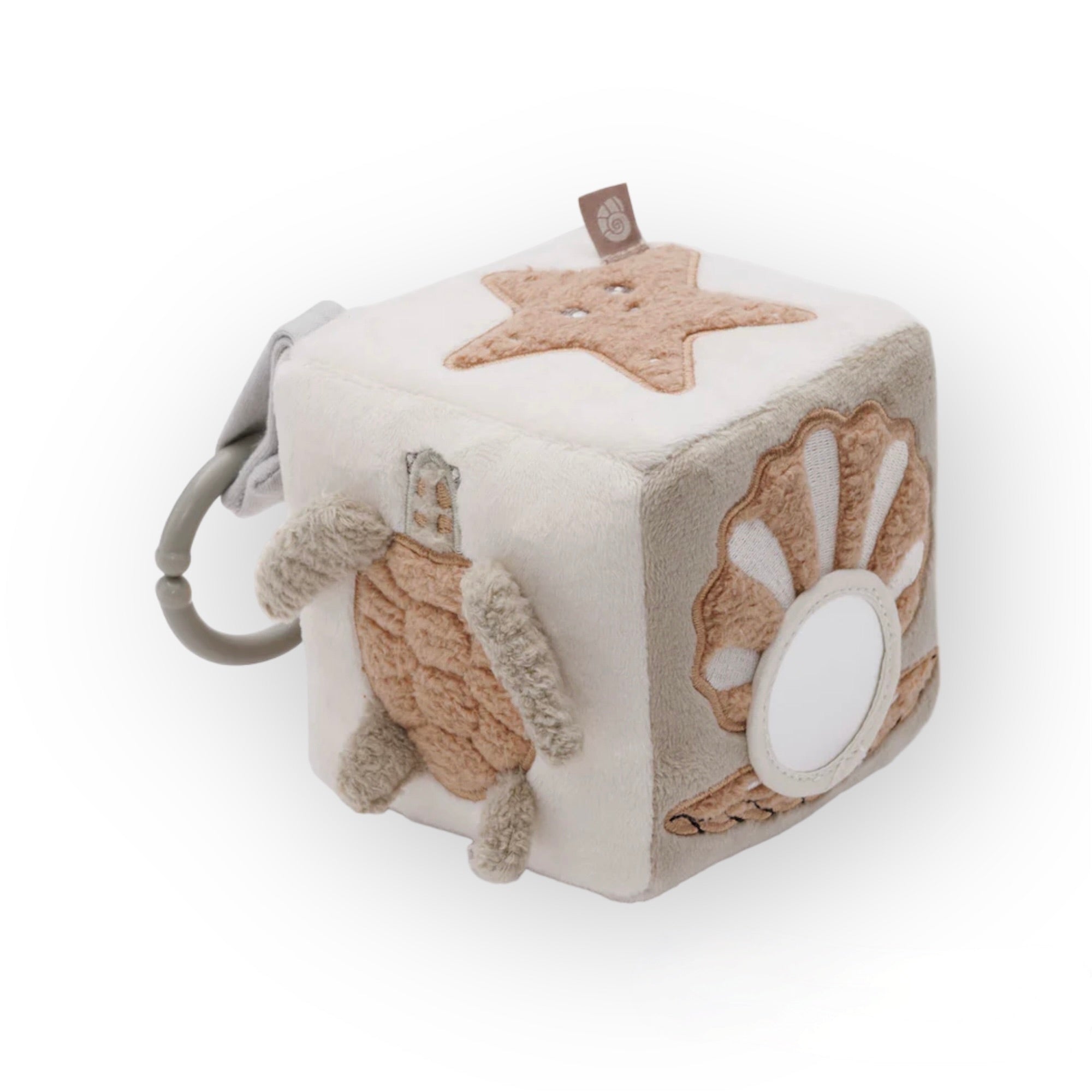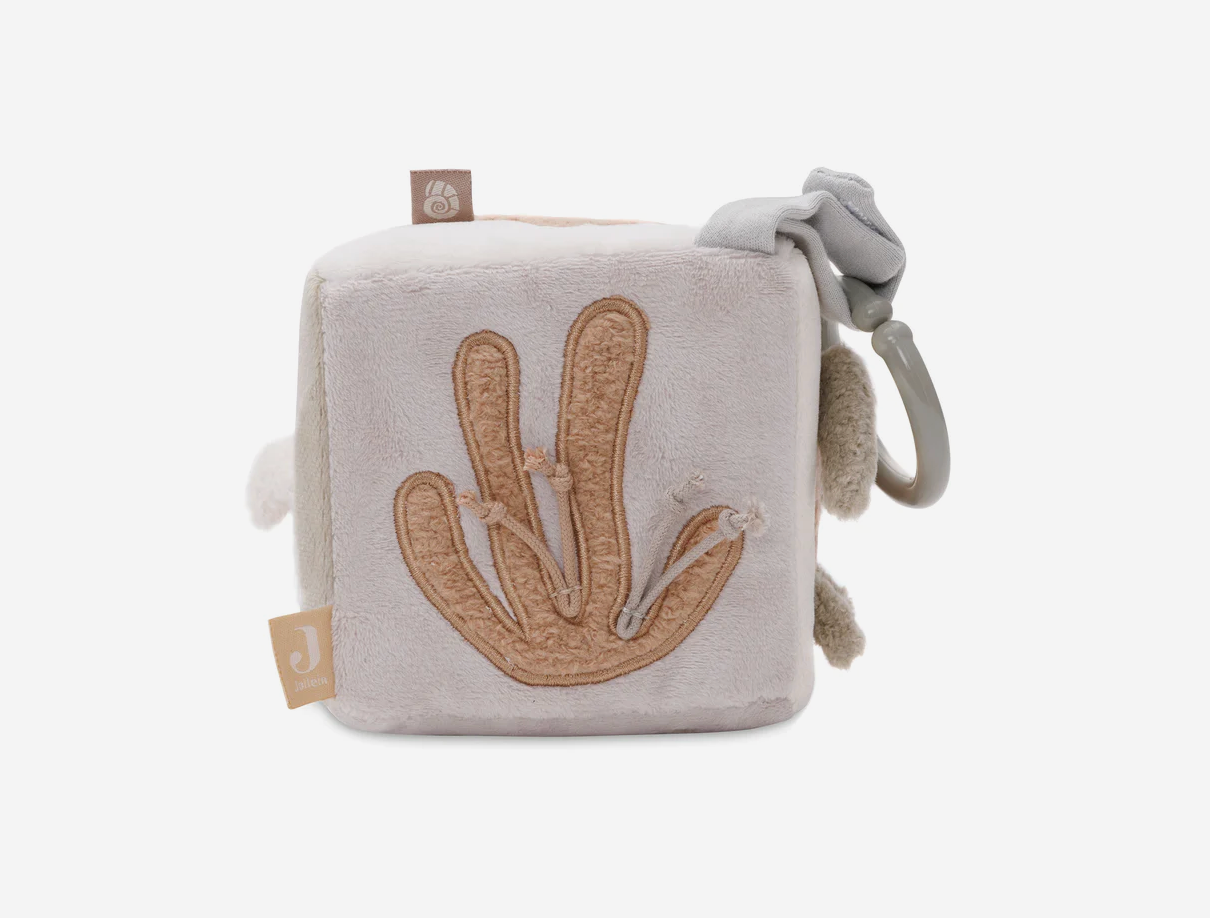 Éveiller les sens de bébé tels que la vue, le toucher et l’ouïe grâce à son miroir, ses étiquettes ou encore son crépitant. Tout en velours, le cube d’éveil est très doux au toucher. Son anneau permet de le suspendre facilement à une arche par exemple.