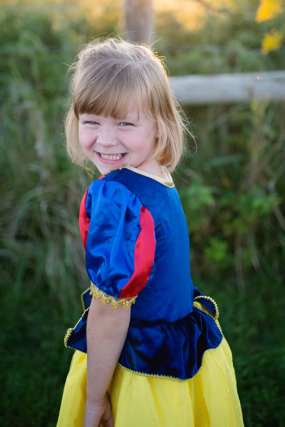 faites rever votre enfant avec cette robe de Blanche neige . Fabriqué avec des tissus, et les details de la plus haute qualité, cette robe présente , de beaux motifs et des couches de textiles riches.