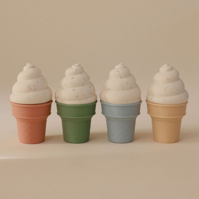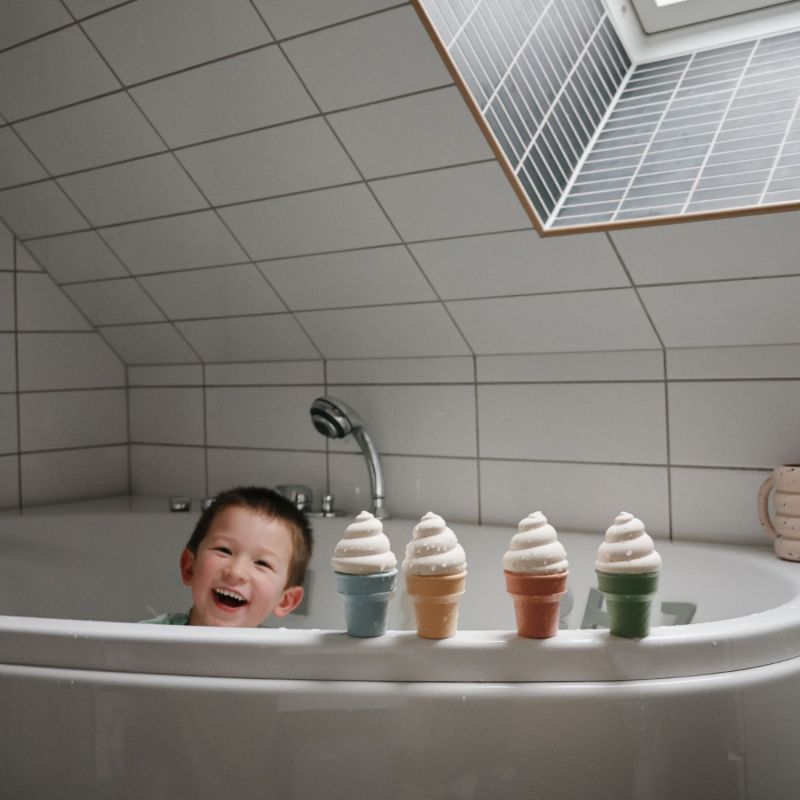 Un bain tout en douceur et en gourmandise avec le Lot de 4 jouets de bain Ice Cream de Mushie !