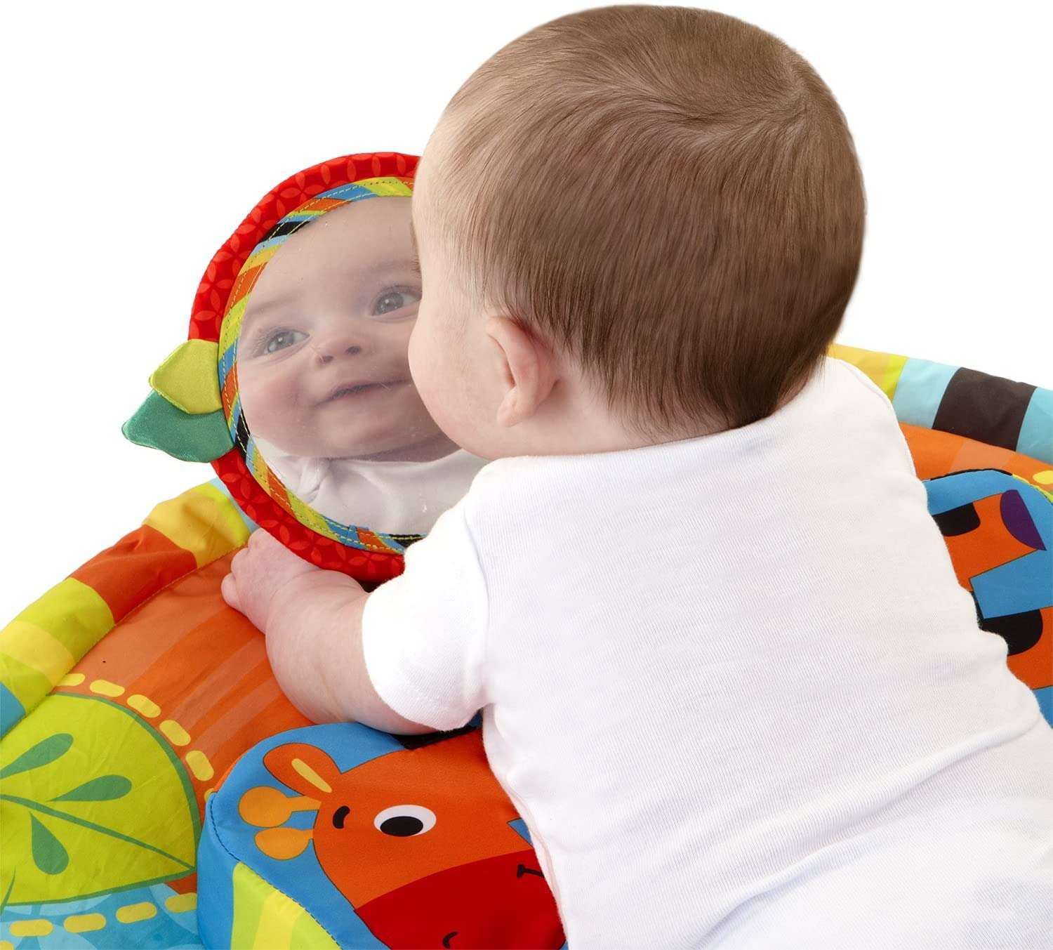 Ce tapis d’éveil a été conçu en tenant compte des principes de stimulations sensorielles avec un coussin girafe qui favorise la croissance de votre bébé lorsque celui-ci adopte la position plat ventre.