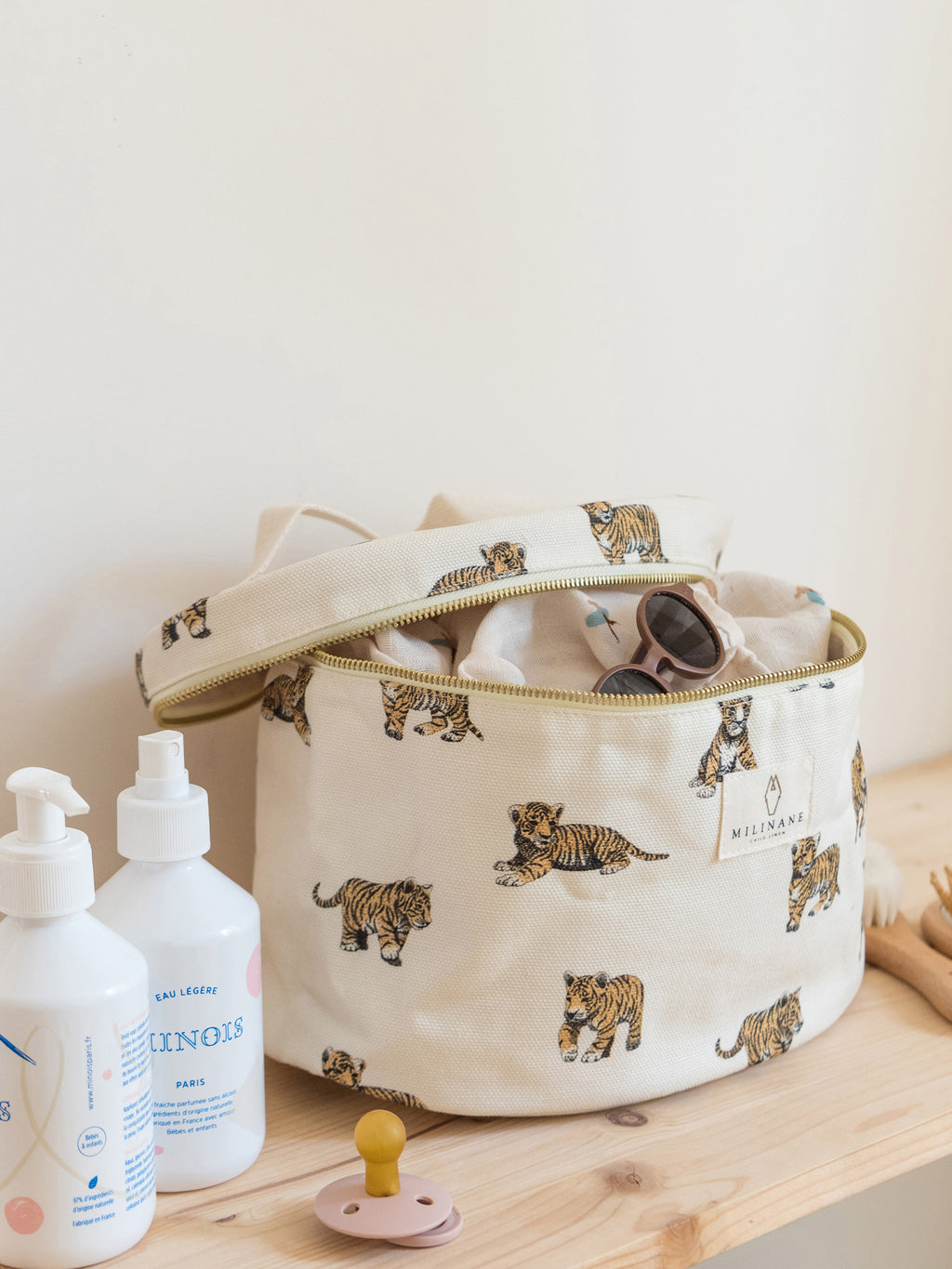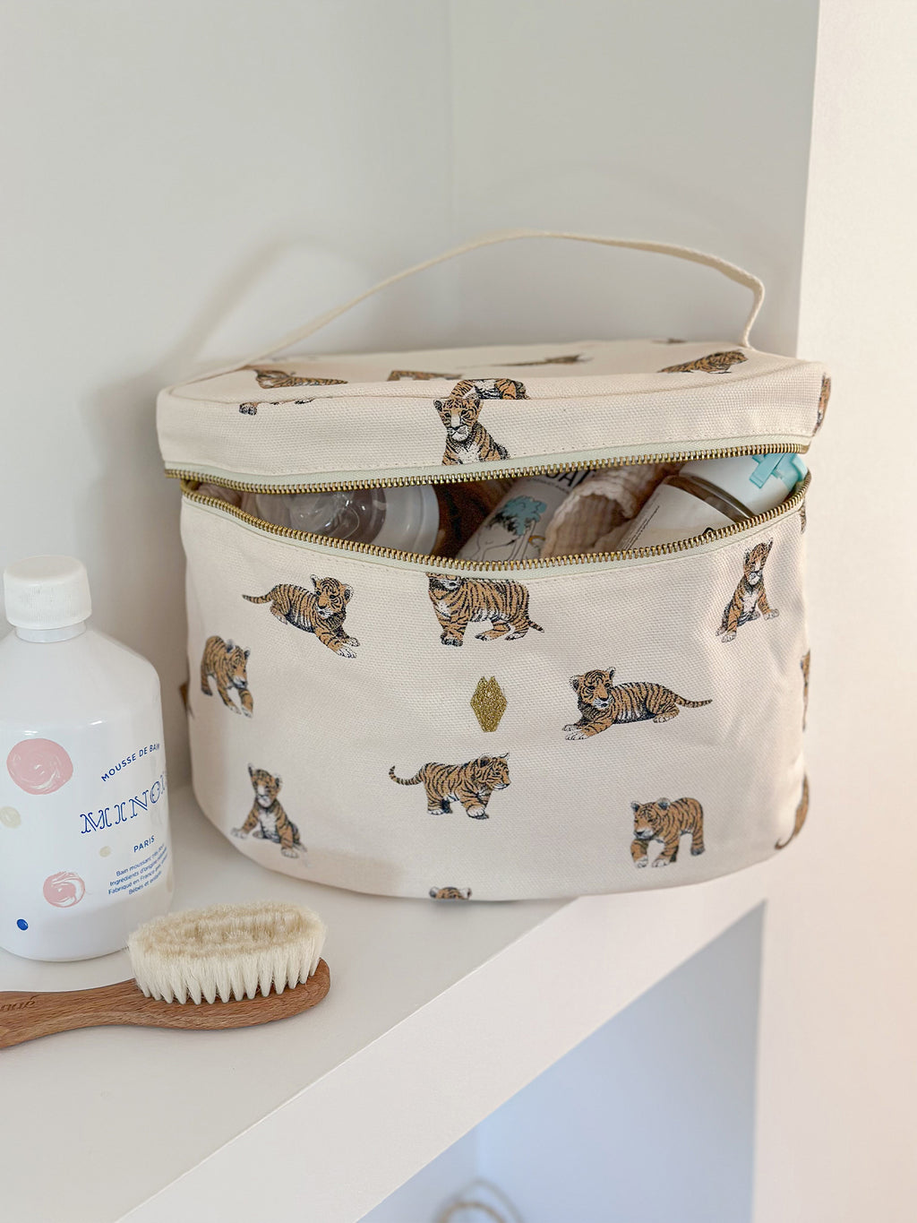 Grande vanity en toile de coton avec grande ouverture zippée.